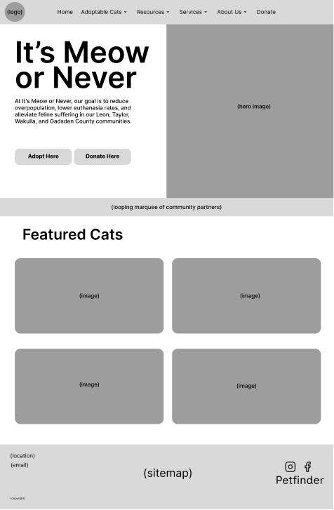 "It's Meow or Never" (IMON) is a non-profit cat rescue with a website that, based on an initial heuristic review, appeared to have significant usability flaws.